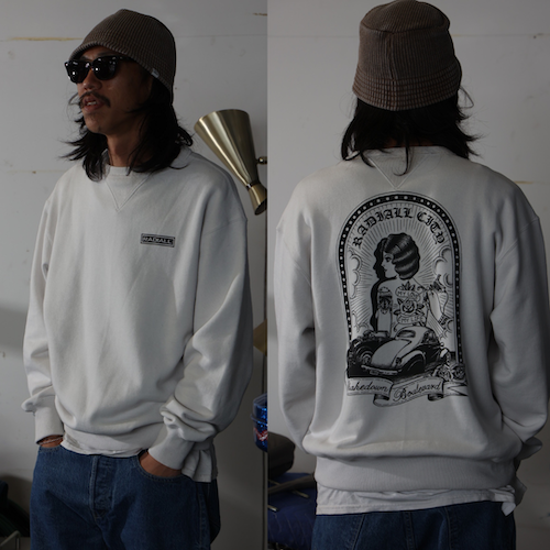 | COMENT | 型崩れしにくく、ふっくらとした風合いな吊り編みクルーネックスウェット。 年間を通じて着やすいライトオンス仕様が一枚でもインナーでも大活躍!! ヴィンテージ感を演出するはめ込み両Vガゼット、長めの袖とリブのクラシカルディティール。左胸にロゴプリント、背中はCOTTON PICKIN TATTOOのHIRO氏のアーカイブアートワークがスクリーンプリントで入ります。 |